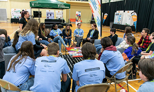 Du 30 mars au premier avril, ce fut un incroyable rendez-vous au Colisée Vidéotron pour le Robotique First, une compétition internationale de robotique pour les jeunes de 14 à 18 ans. Plusieurs jeunes et leurs parents se sont arrêtés au kiosque de l'École d'ingénierie.