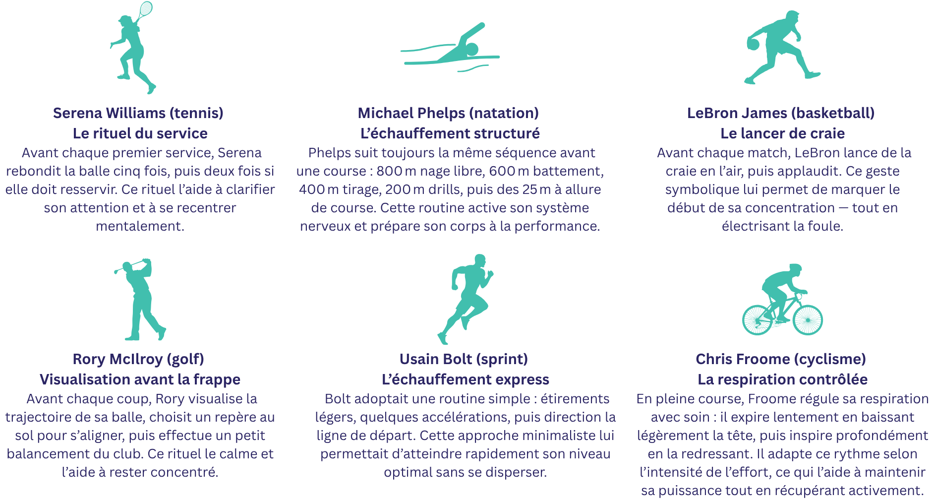 Les plus grands athlètes du monde ont tous un point en commun : ils ont développé des routines bien à eux pour se sentir prêts, concentrés et confiants avant une performance.